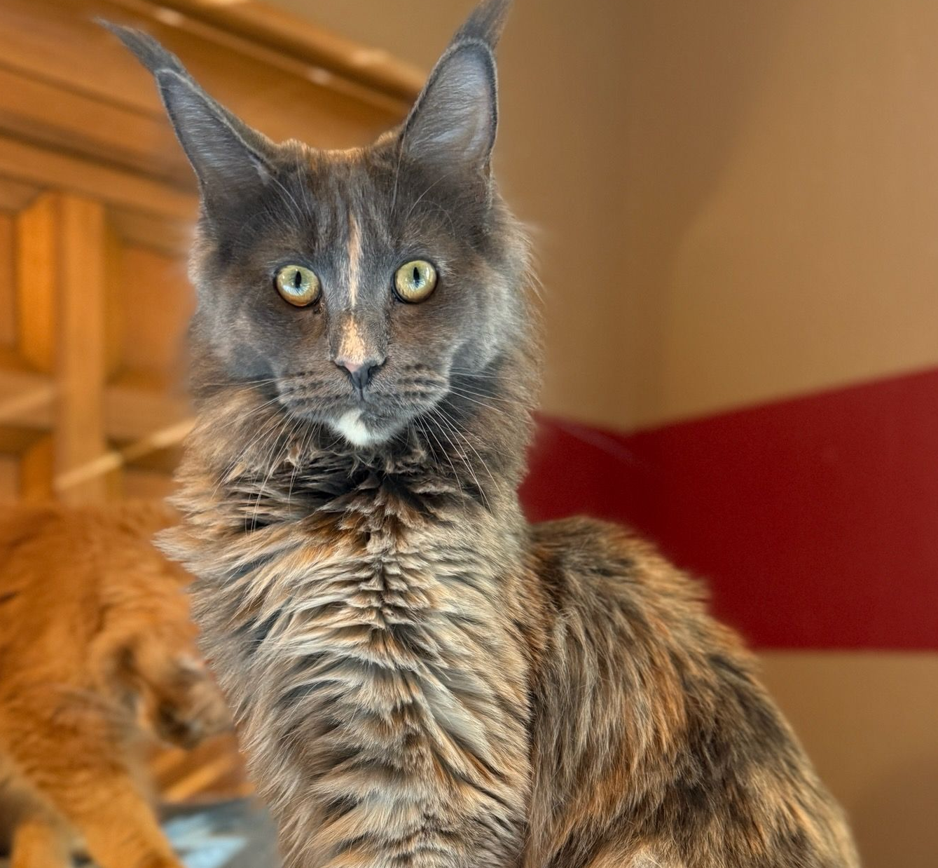 Iceman is a CFA and TICA registered red shell Maine Coon sire. He is from Noble Manes cattery of LA will be contributing to our Maine Coon offerings!