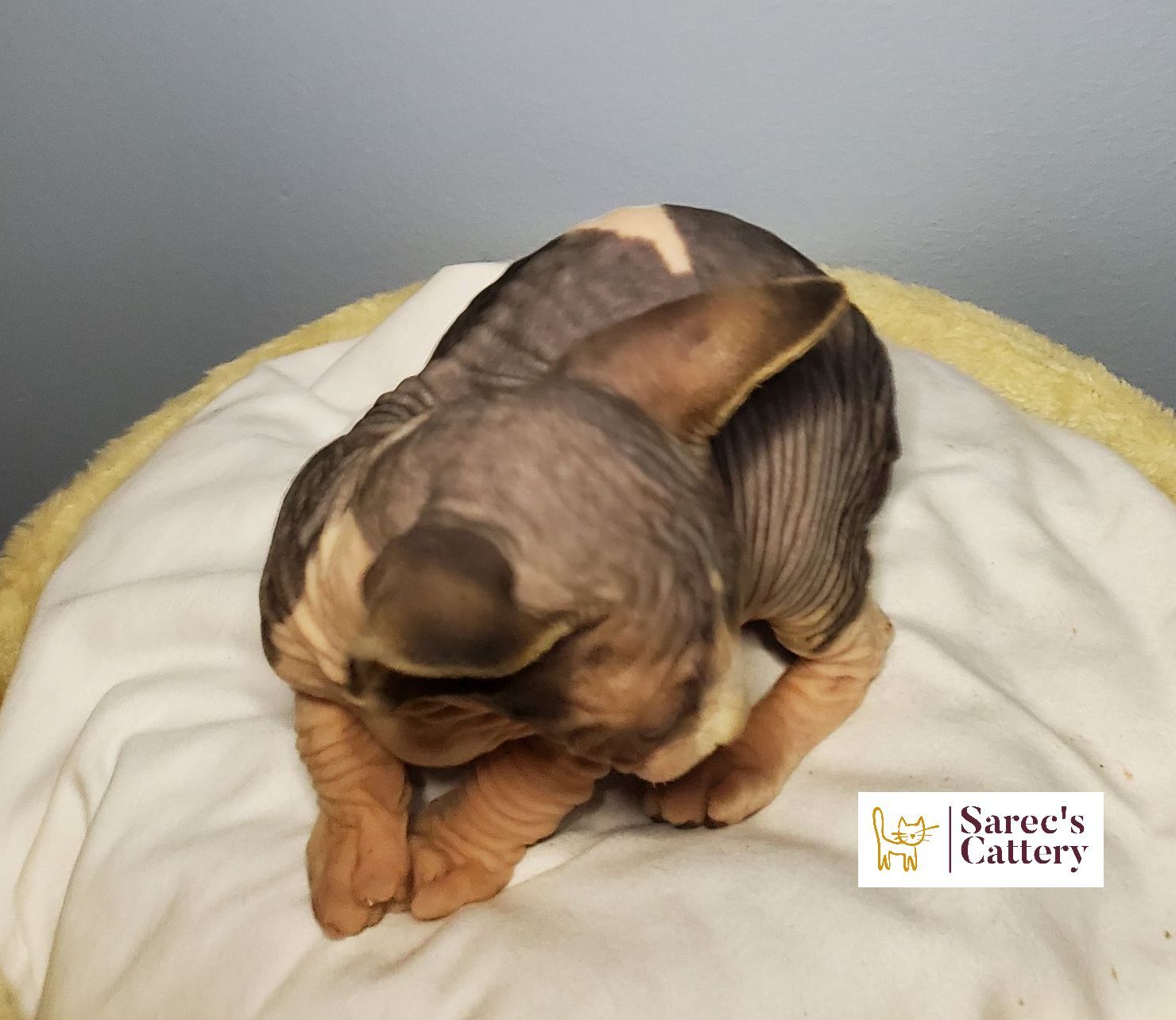 Corbin is unique in the litter because he has a minskin coat which is so short you can barely see it, yet it feels super velvety to the touch!